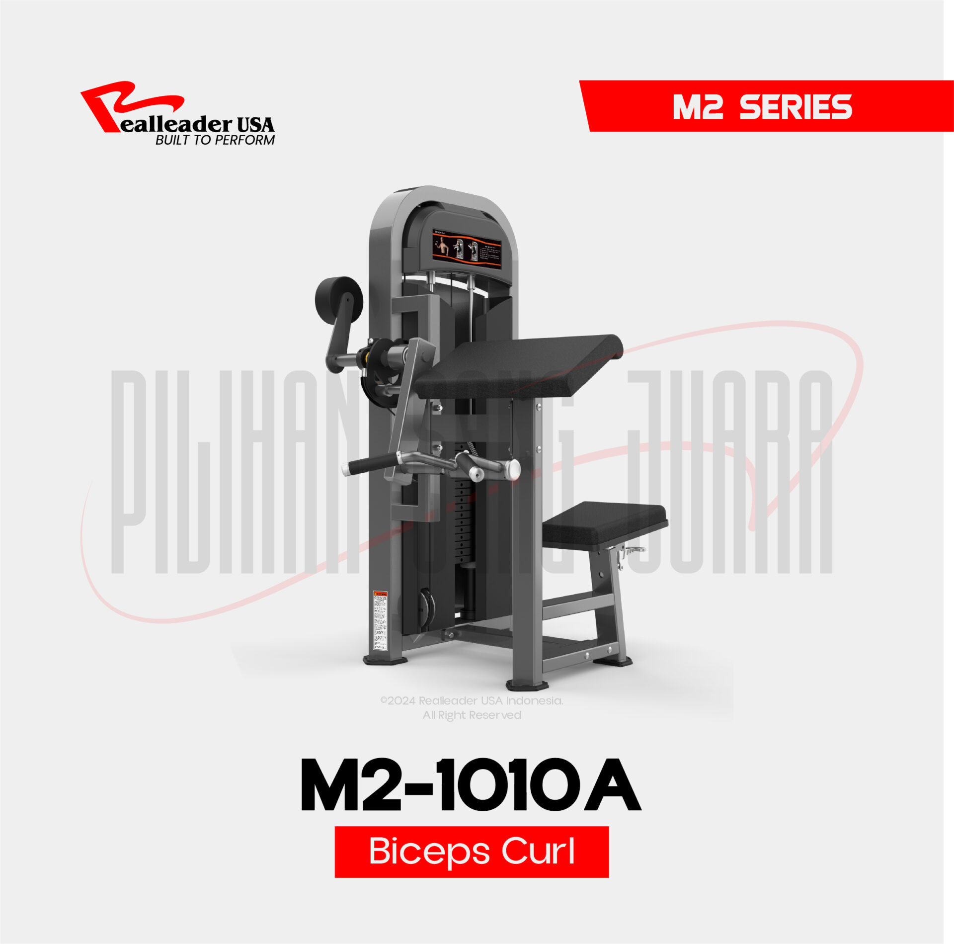 Latihan biceps curl adalah latihan isolasi untuk otot biceps di lengan atas; Seated Biceps Curl M2 1010 oleh Realleader USA membantu pengguna untuk secara efektif mengarahkan otot biceps dan forearm melalui gerakan yang stabil dan terpandu.