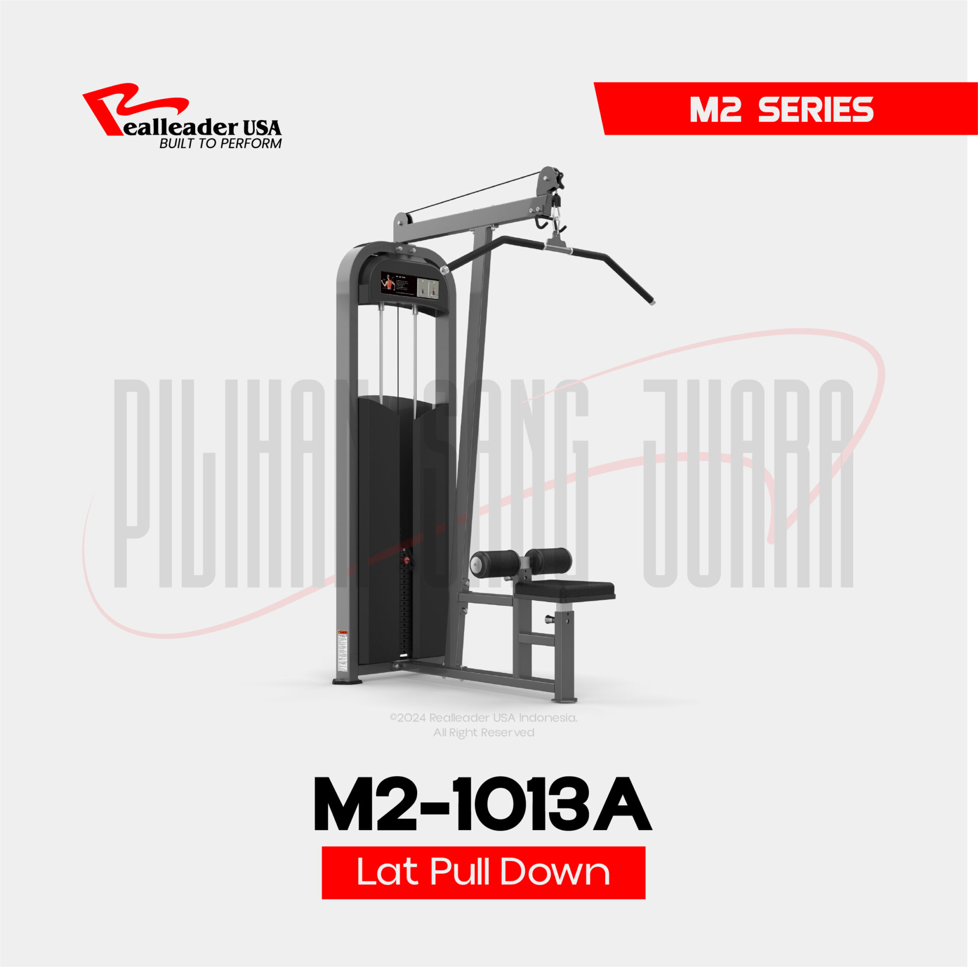 Mesin Lat Pulldown Realleader USA – M2 1013A secara efektif mengarahkan otot latissimus dorsi (otot punggung) pengguna.